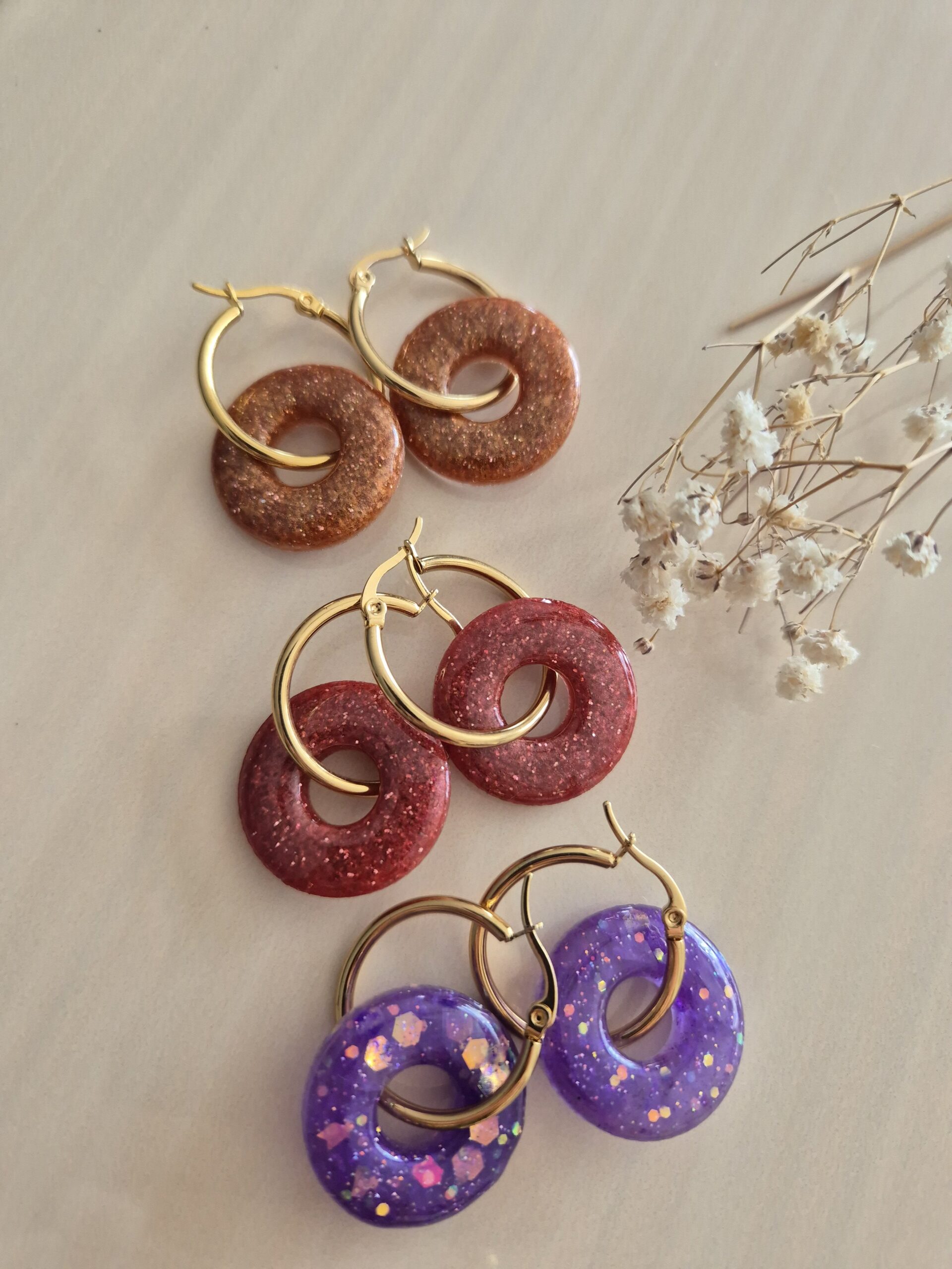 Leur forme donut moderne et leurs reflets scintillants leur donnent un style à la fois élégant et tendance.