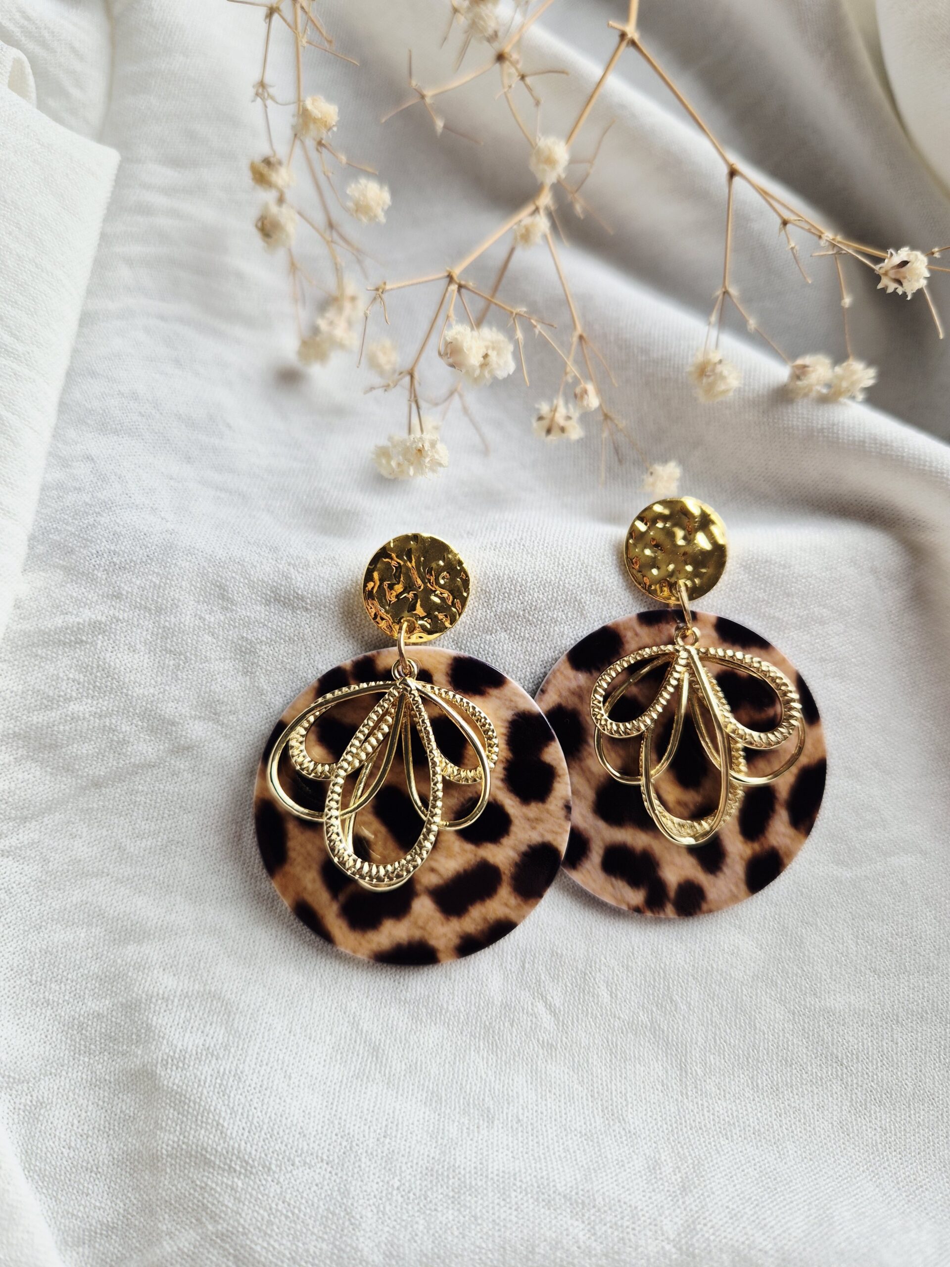 Ces boucles d’oreilles associent parfaitement le motif léopard intemporel à des détails dorés délicats pour un rendu à la fois chic et tendance.