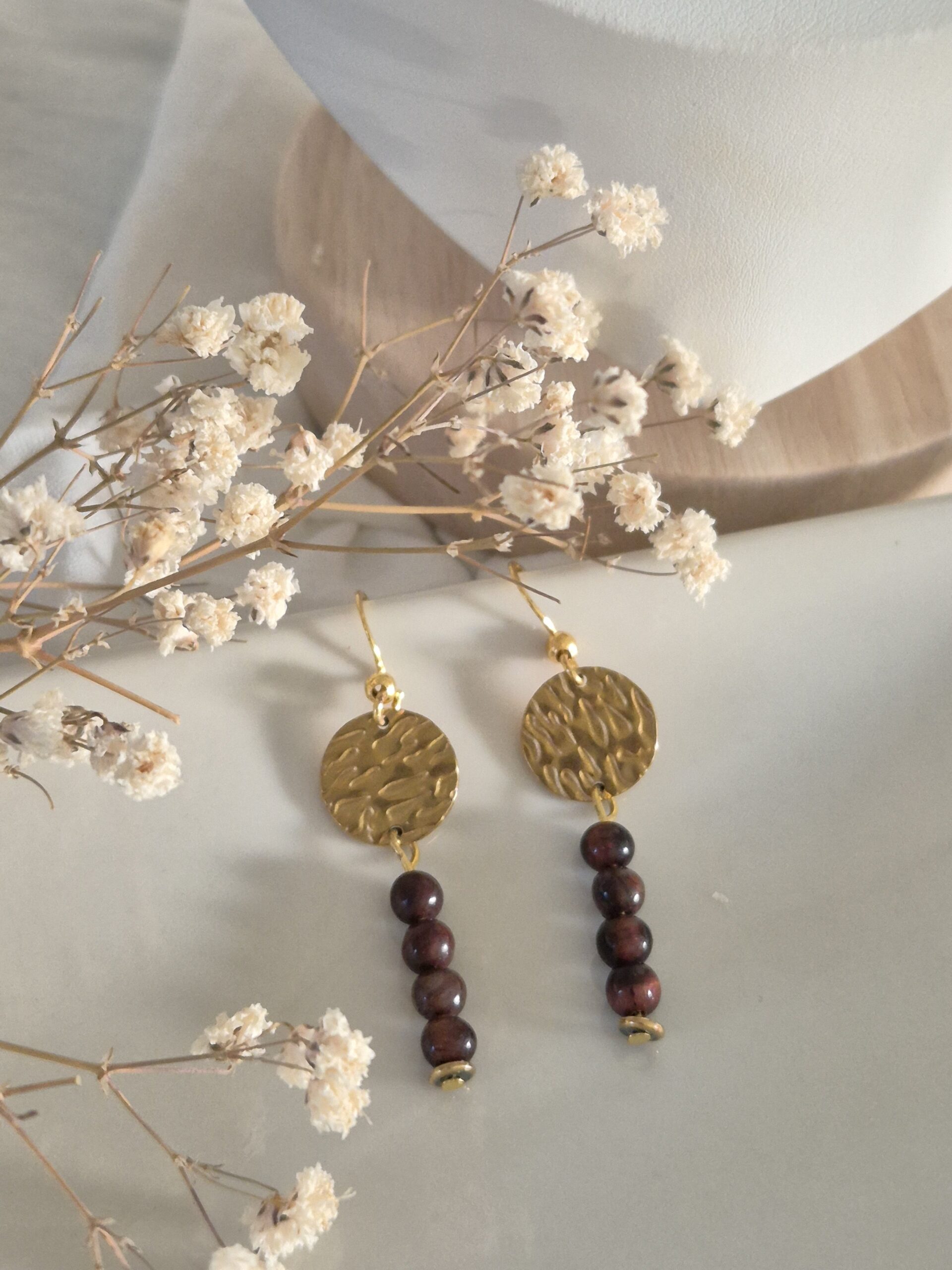 Élégantes et intemporelles, ces boucles d’oreilles mettent en valeur la beauté naturelle de l’œil de tigre, une pierre aux reflets chauds et lumineux.