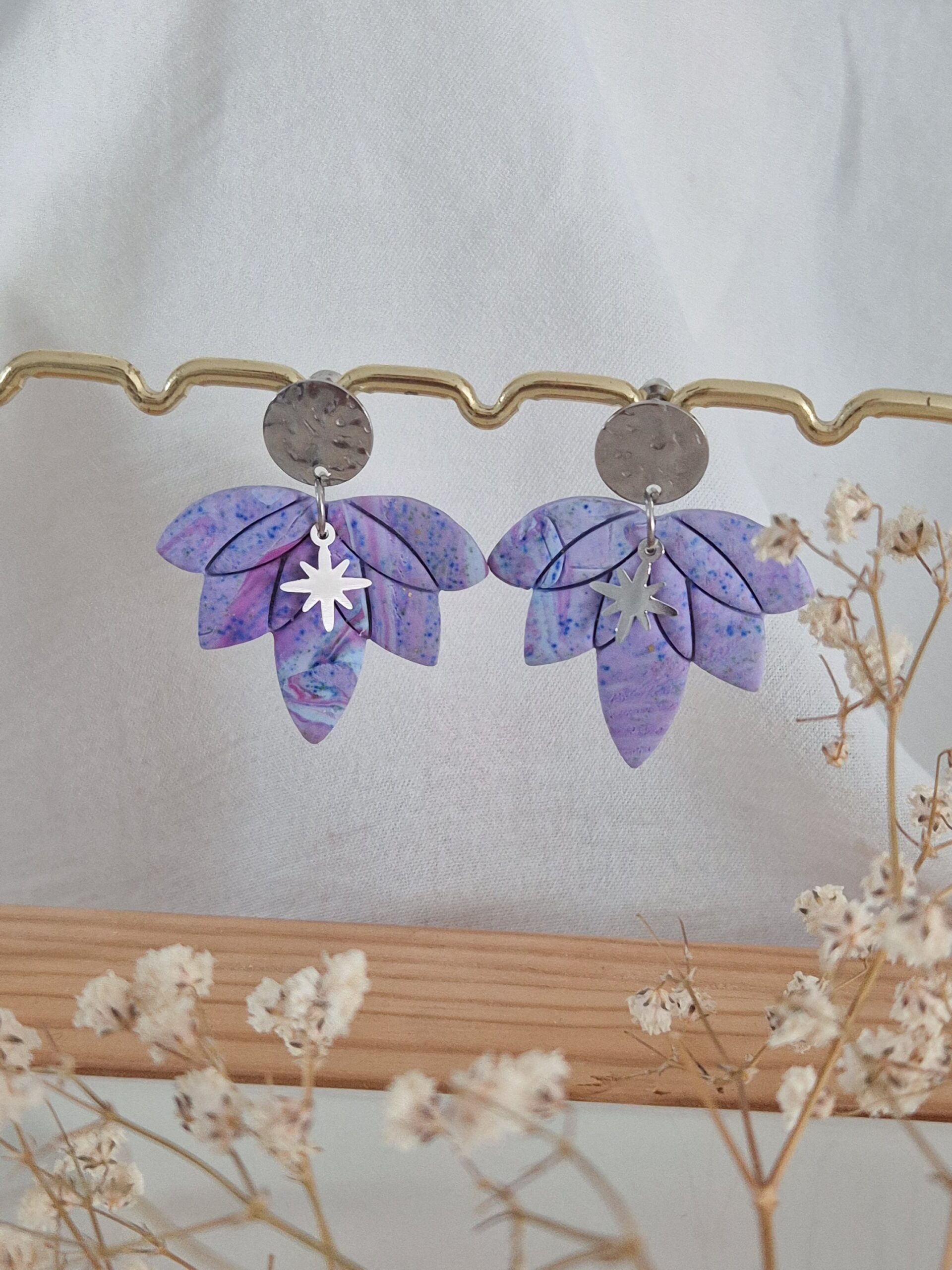 La base en pâte polymère faite main repose sur une attache argentée en acier inoxydable, garantissant confort, résistance et hypoallergénicité. Légères et agréables à porter, elles conviennent à un usage quotidien ou pour des occasions spéciales.