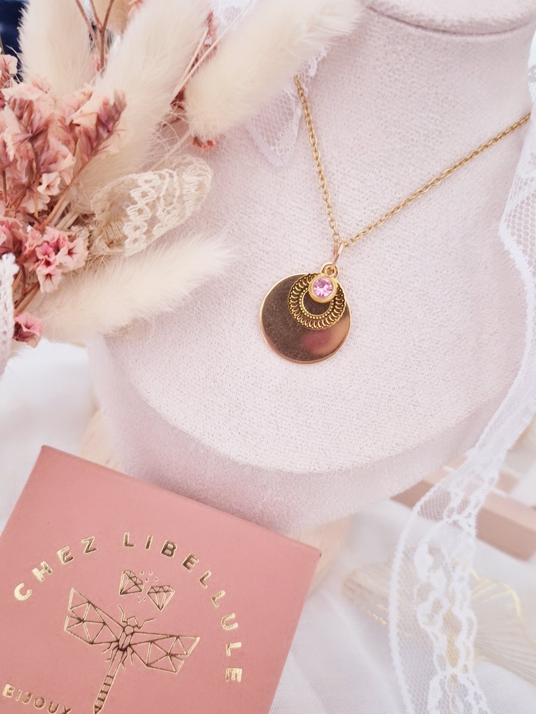 • Strass : Un strass discret et élégant est fixé sur la médaille, apportant une touche de brillance subtile pour illuminer votre décolleté. Le strass est soigneusement sélectionné pour son éclat et sa longévité.