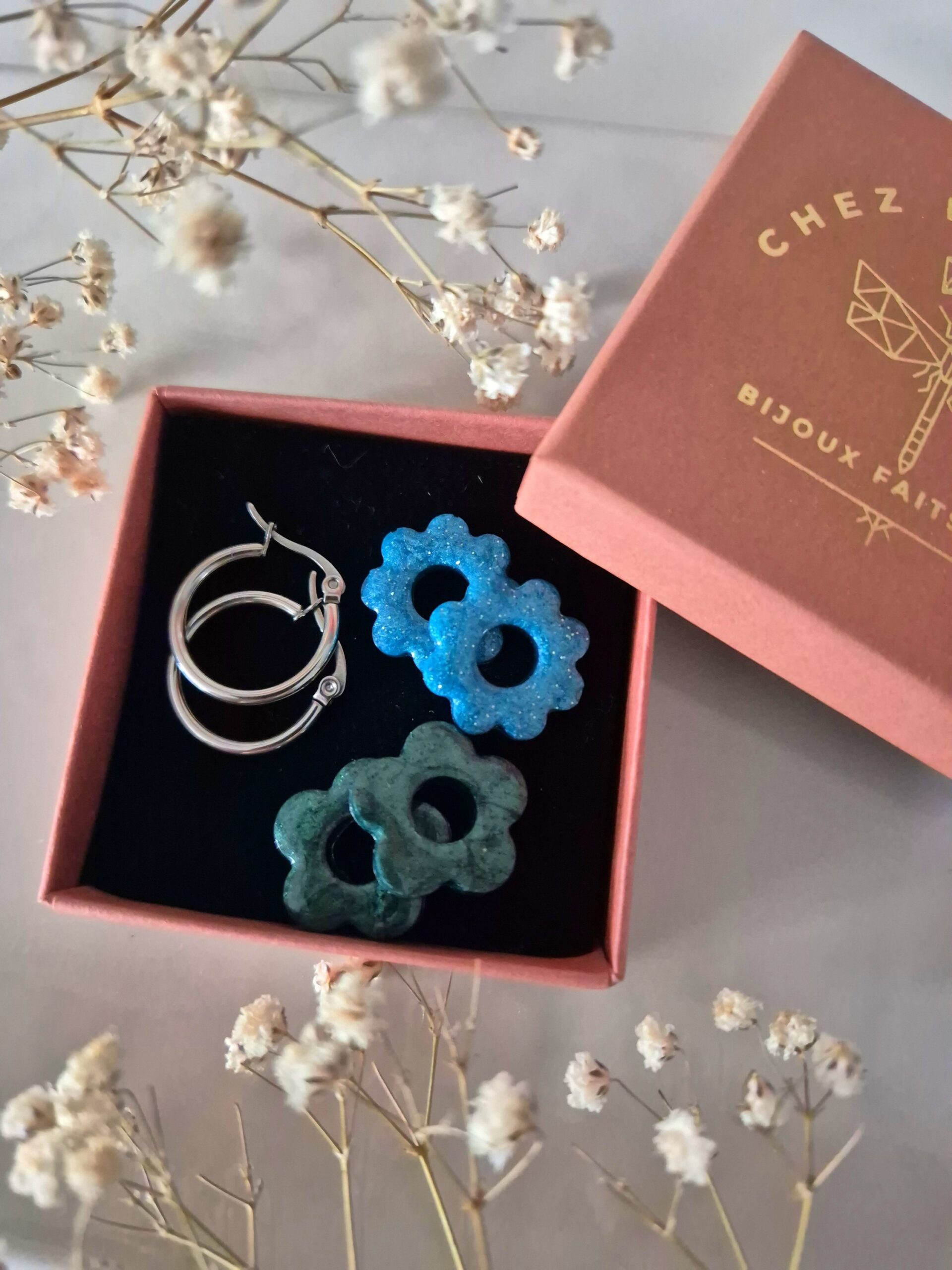 🌸 Box Bijoux – novembre- 2 paires de pampilles + 1 paire de créoles dorées ou argentées 🖐️ Entièrement fait main